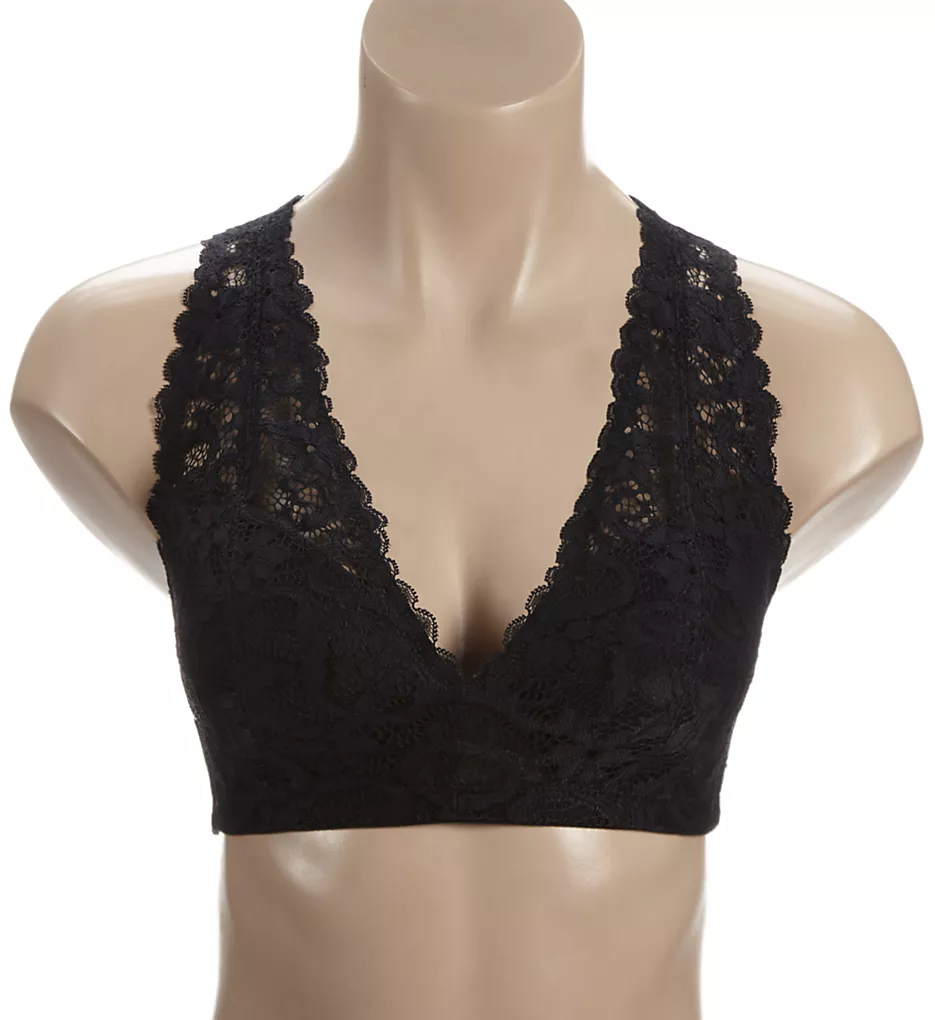 - Racerback lace panel is lined with fine mesh.