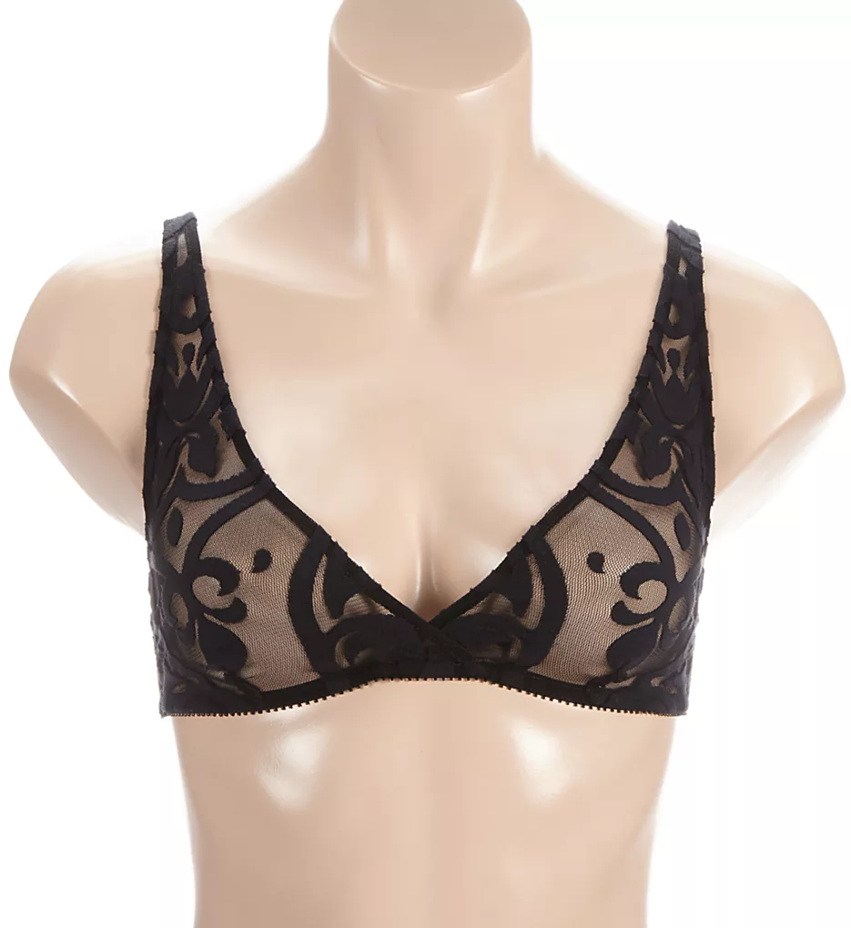 - Sexy, sheer mesh cups overlap to create V-shape.