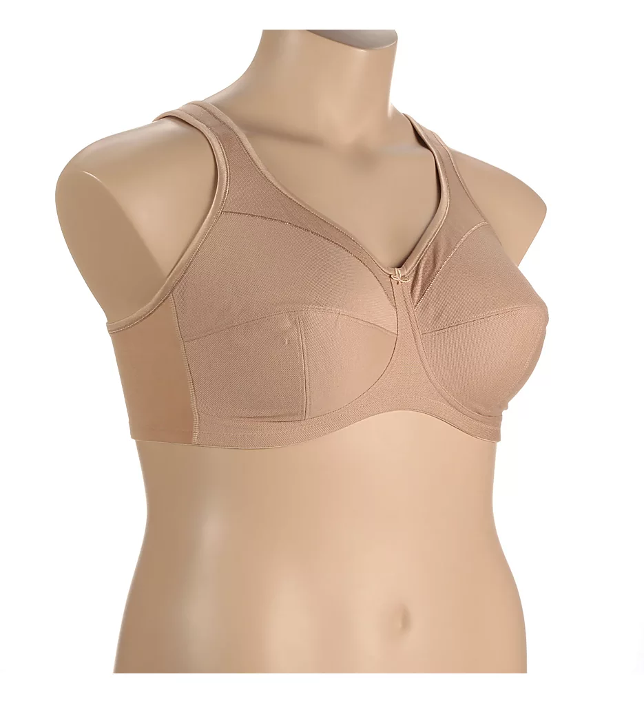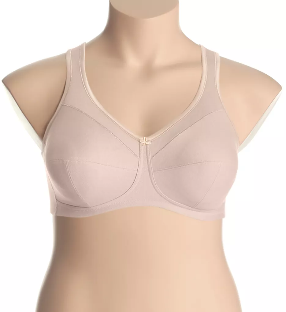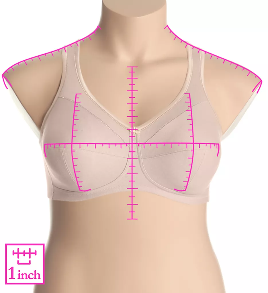 This everyday full figure bra is made of 80% cotton pique laminated with firm cotton netting and features softly padded straps for comfort. The anatomically-shaped underbust band prevents pressure on the stomach.