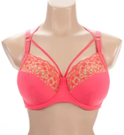 - Cup overlay is a lively sheer floral lace with a pattern that shows against the light skintone color of the padding.