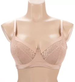 - Seamless, unlined (unpadded), see-through, stretch lace underwire cup has a nude mesh side support sling to center breasts.
