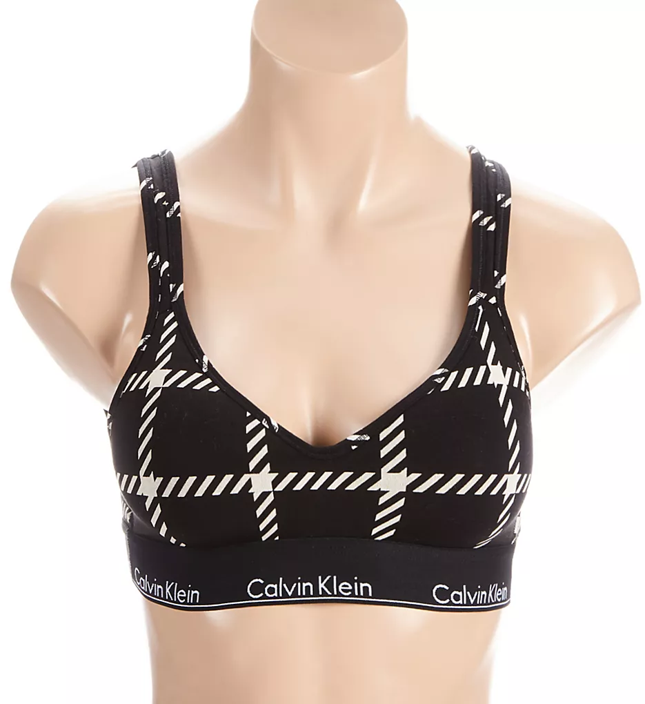 One of the most famous names in lingerie graces this pullover bra with inner push-up pads and a bold allover windowpane pattern. Made of cotton, modal, and elastane.