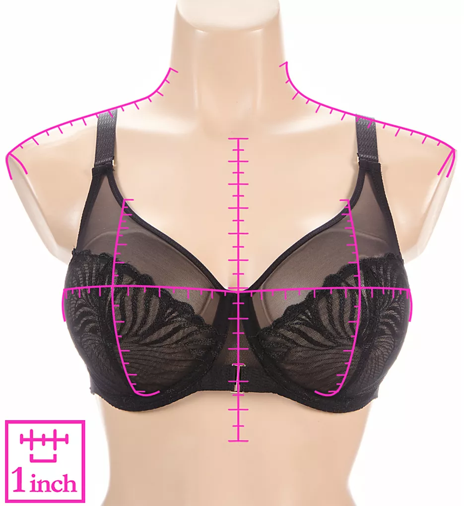 - Sheer fine tulle panel at top of cup lays smoothly over chest with elastic binding for hold.