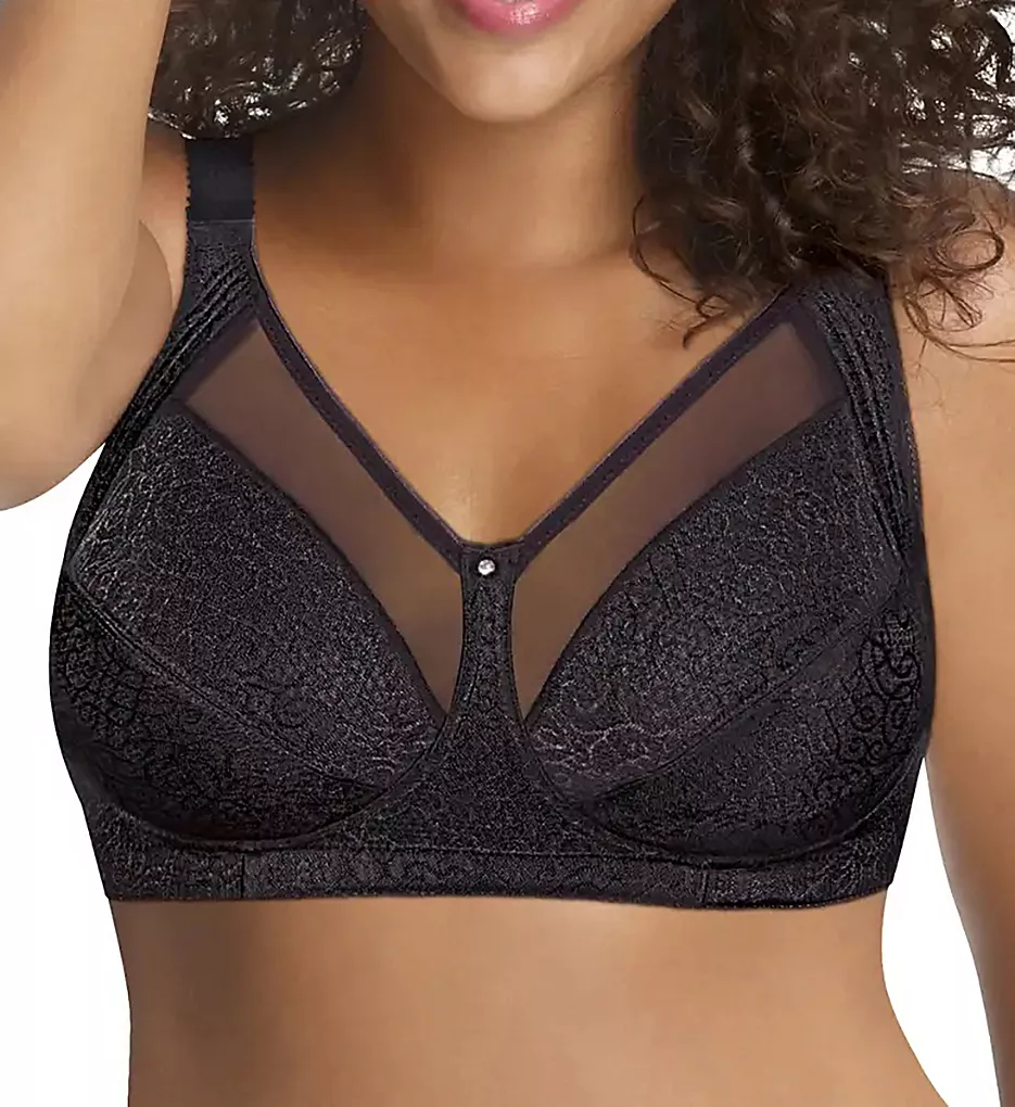 - Wireless multipart cup has a lightly padded, inner side support sling that works with mesh panel at the neckline to gently surround breast with support.