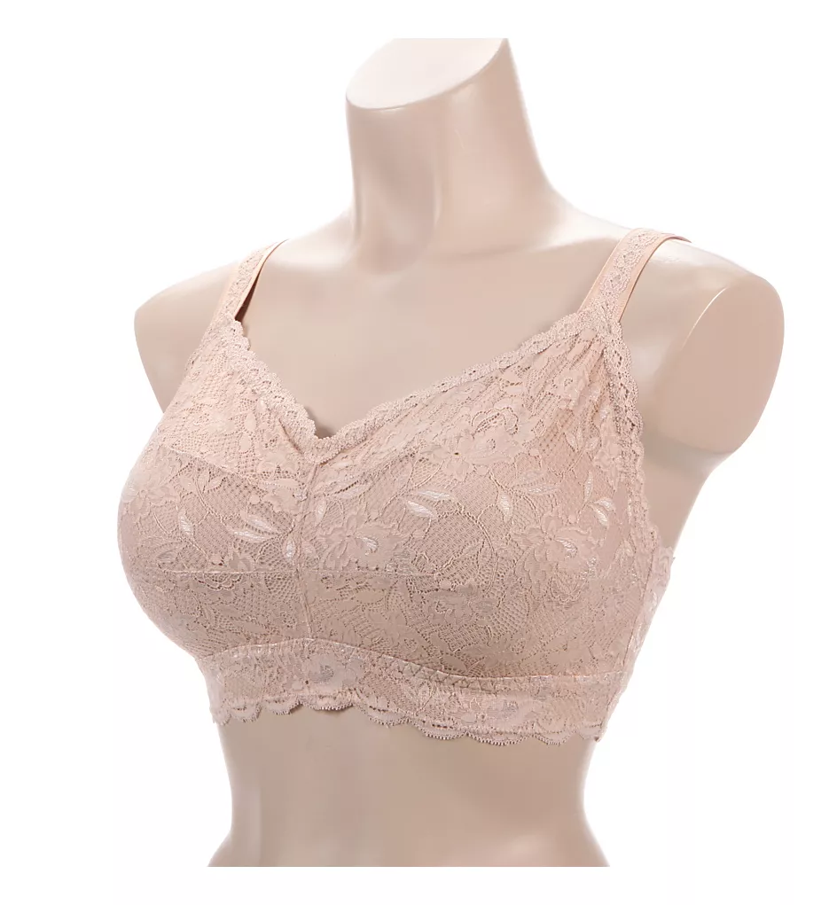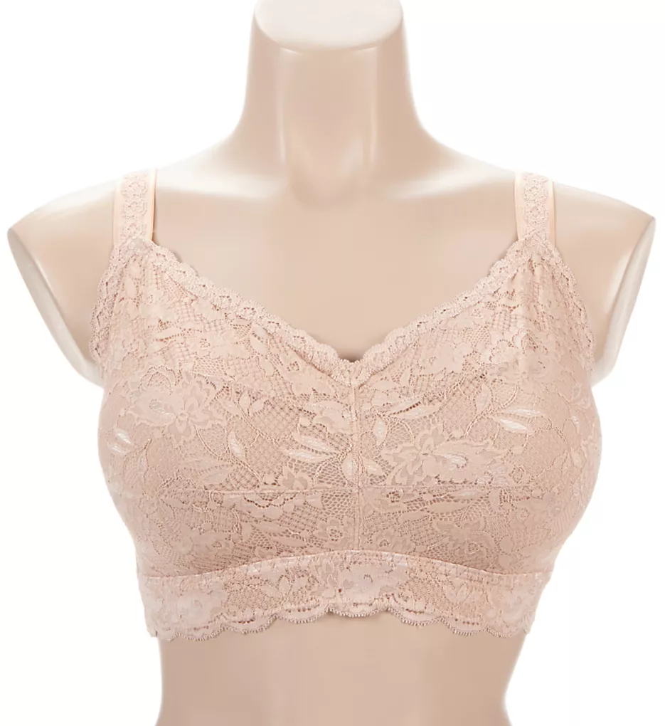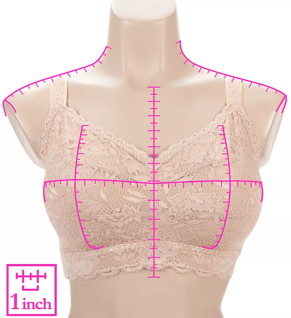 Floral lace bralette has wireless cups and convertible center pull straps for a comfortable fit. Full figure cup sizing. Made of polyamide and elastane.
