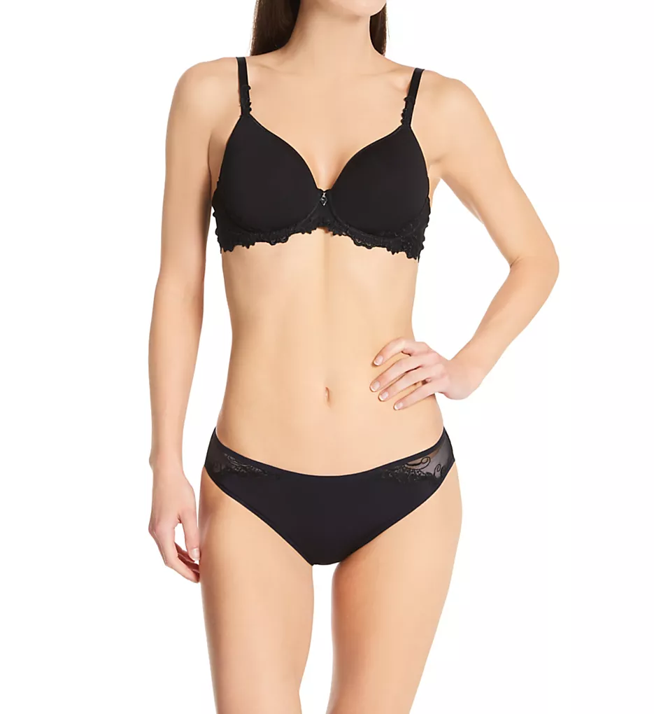 Light, elegant bra trimmed with two-tone guipure lace from cups to back. Breathable spacer foam cups improve comfort throughout your day. Made of polyester, polyamide, and elastane.