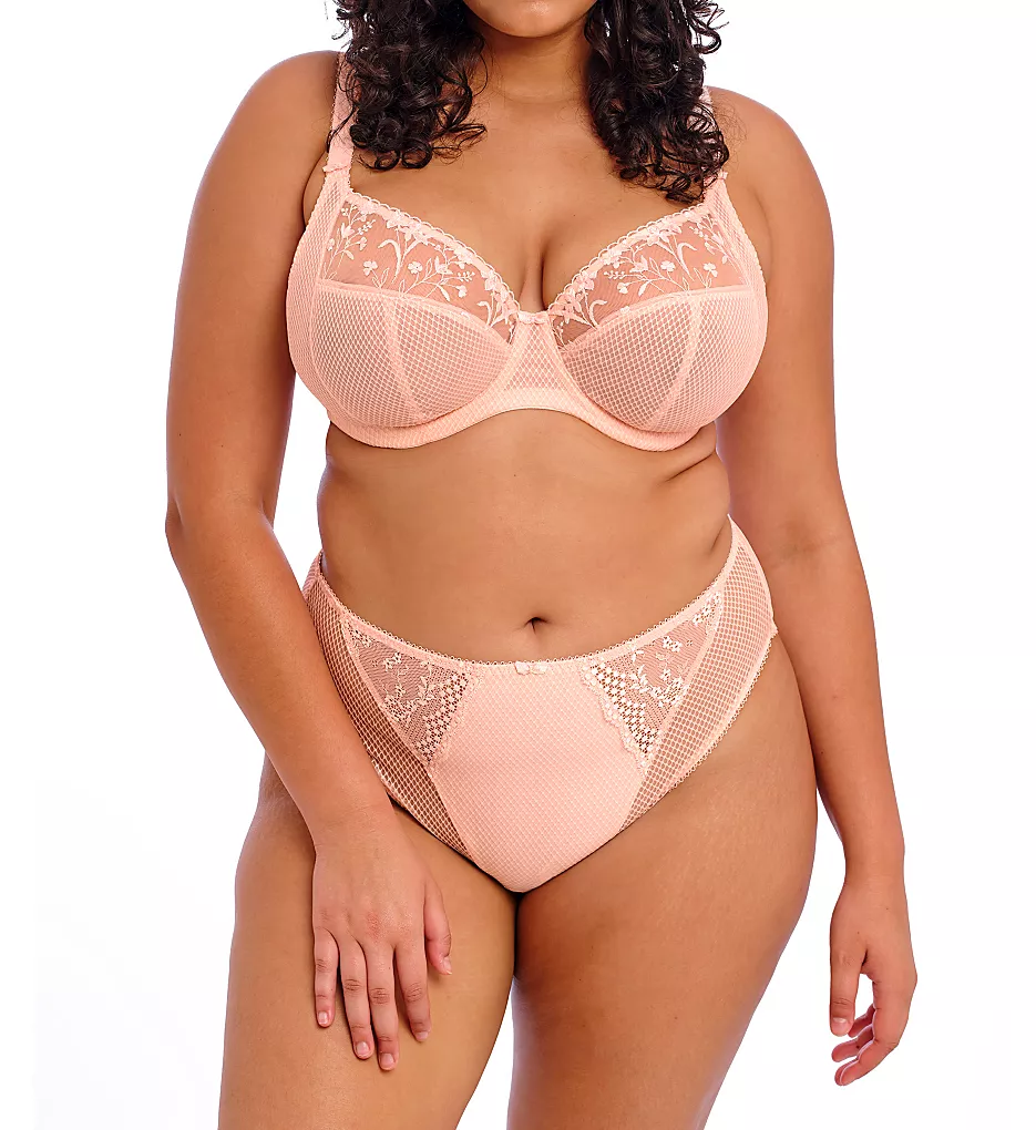 - Lower cup has a sheer textured diamond pattern, backed with opaque lining so pattern is visible.