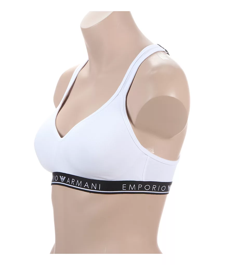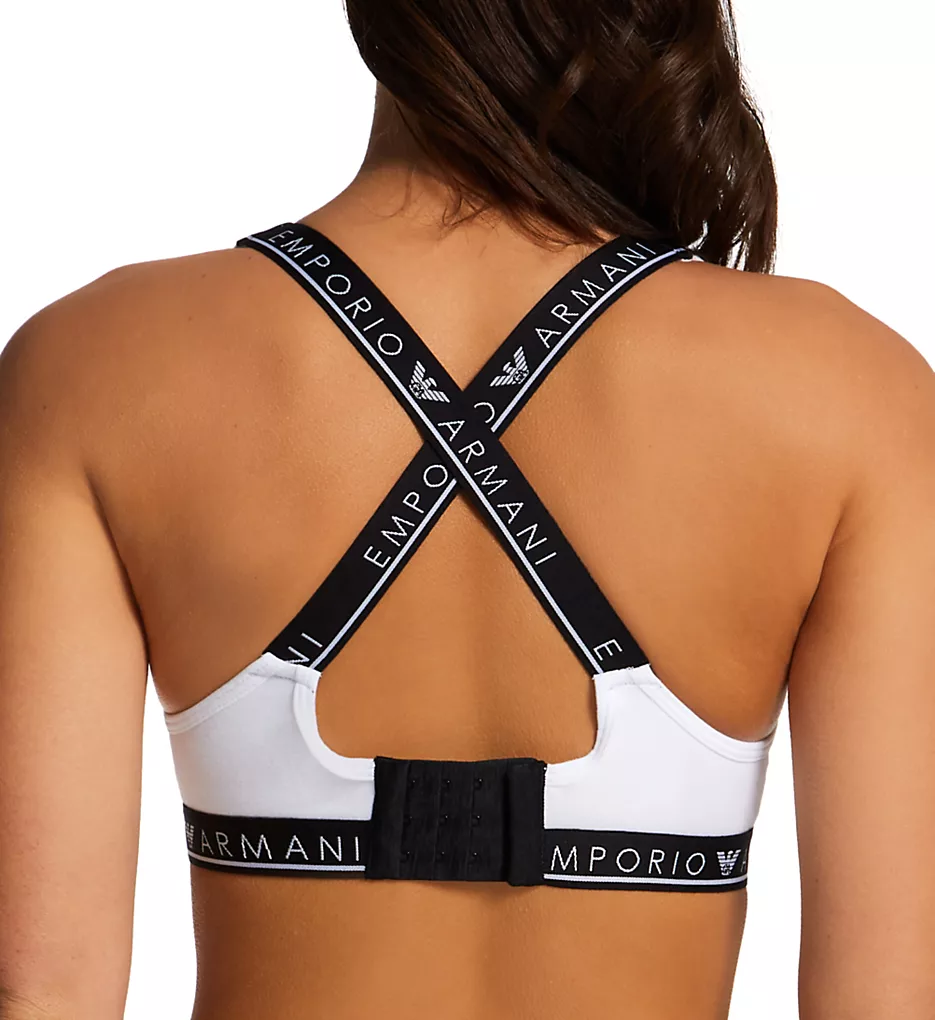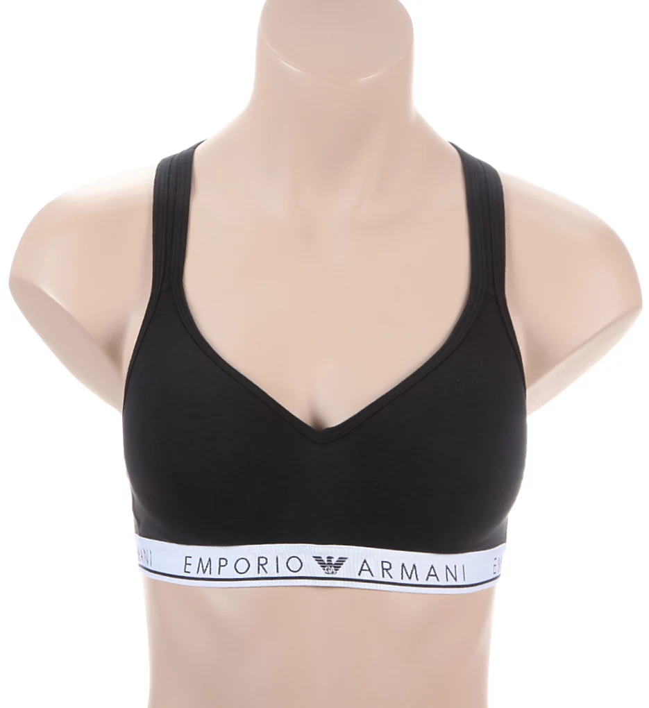 This bralette bra is anything but basic. Its wireless cups have push-up padding for extra lift and support. Non-adjustable logo straps cross at back. Soft knit body has jacquard logo underband at bottom. Made of cotton, polyester, and elastane.
