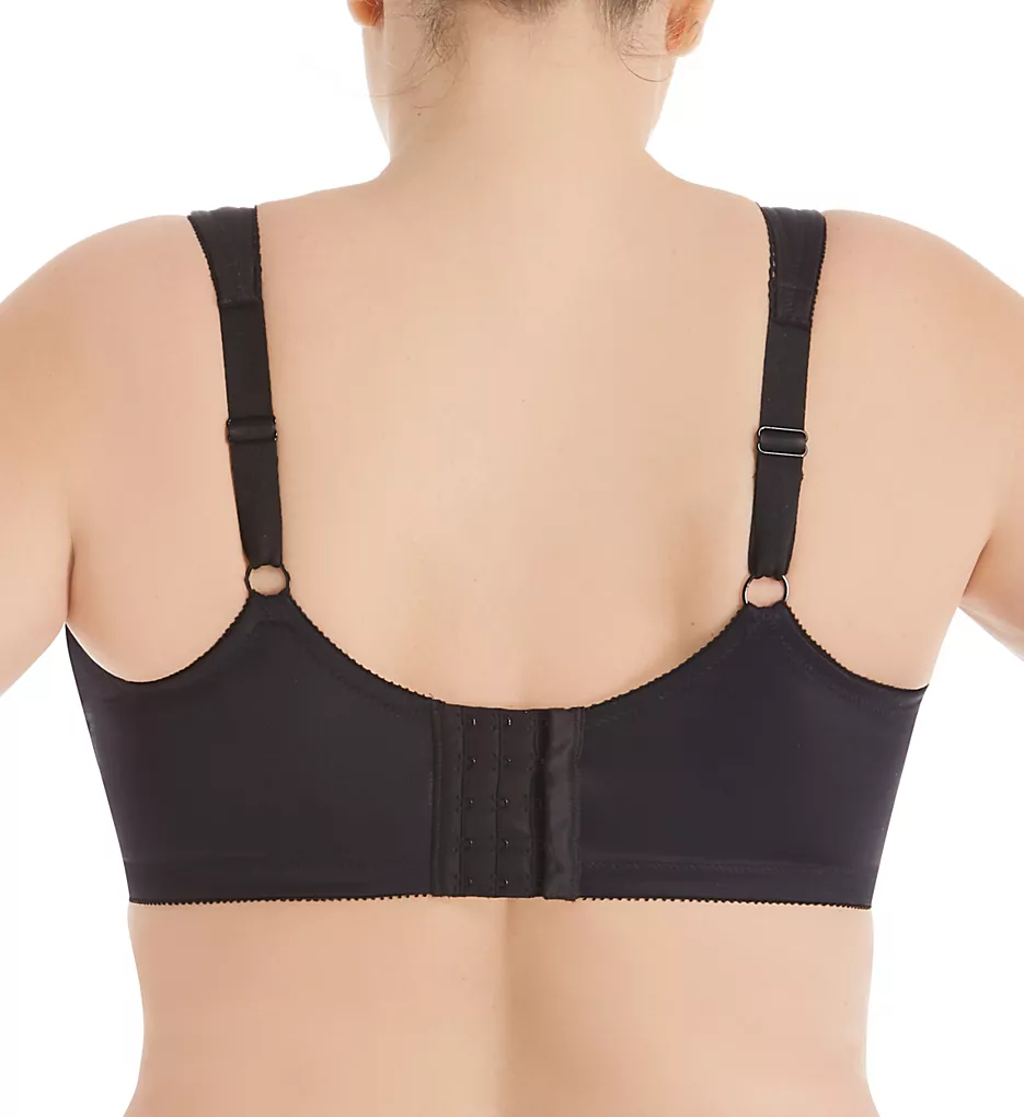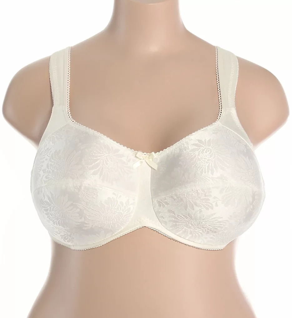 The floral jacquard pattern on this plus size full coverage underwire bra lies flat under all your fine fashions. A bandless bottom edge is wonderful for women with shorter torsos.