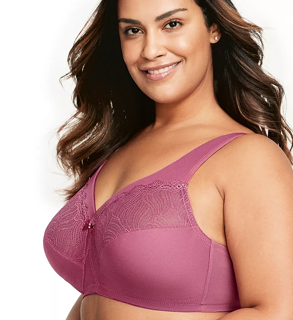 - Upper cup is semi-sheer lace with mesh backing.