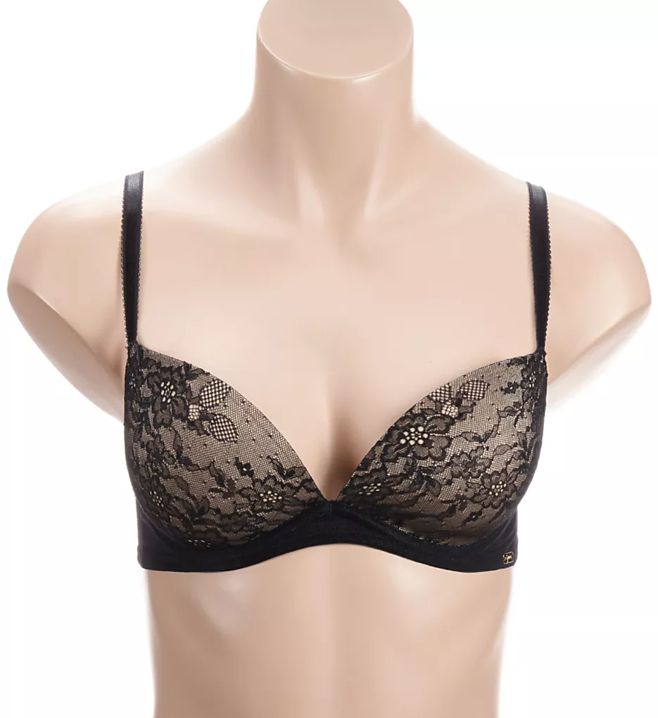 - Contour, underwire cups lift your bust with medium, graduated push-up padding and are accented with a contrast lace overlay.