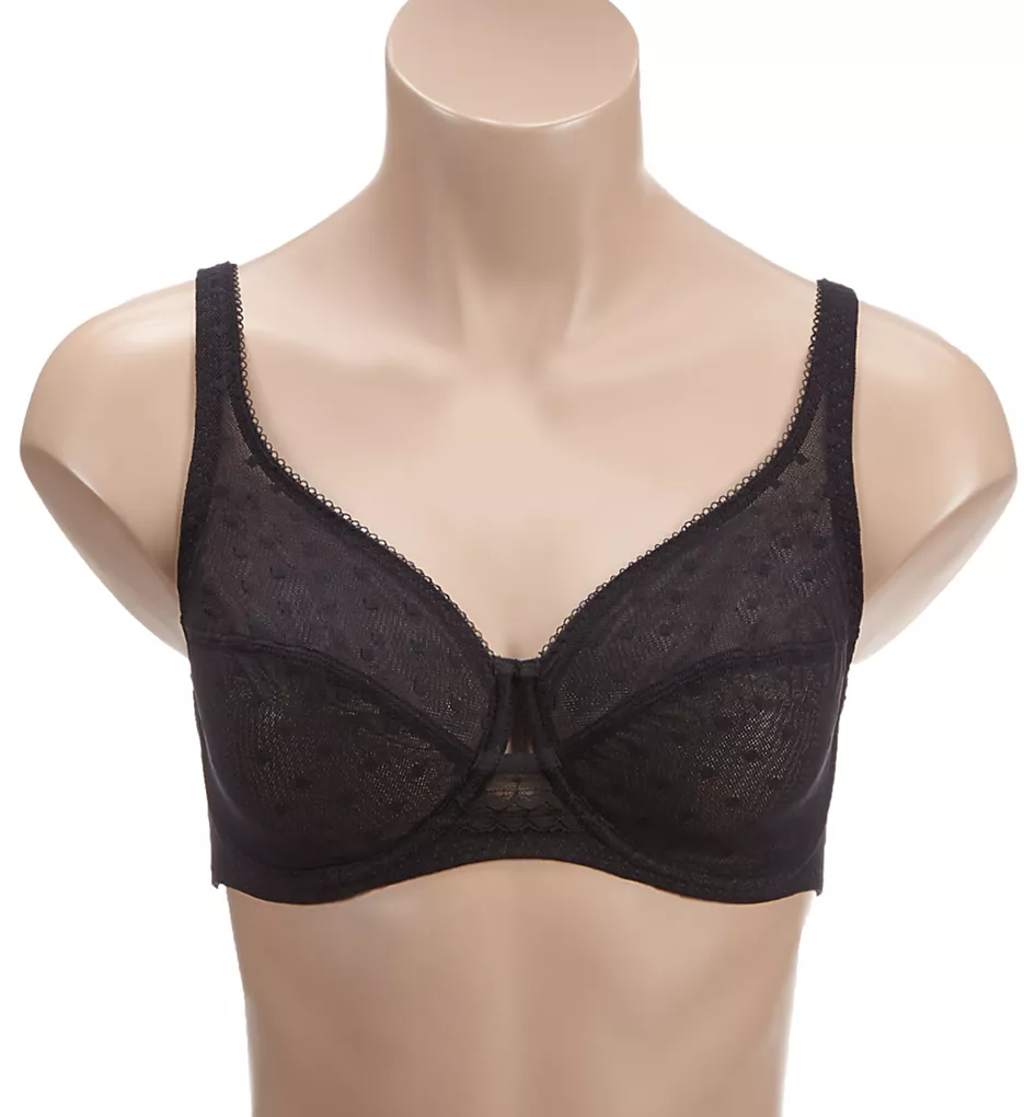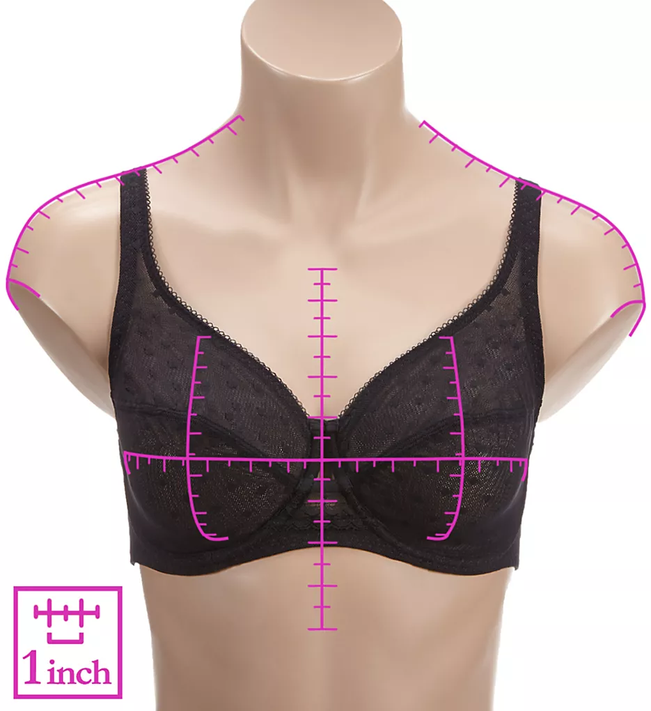 - Cup overlay has a point d’esprit diamond pattern.