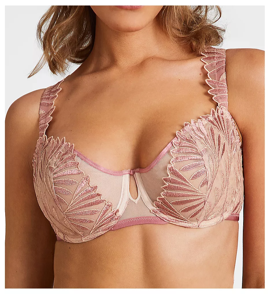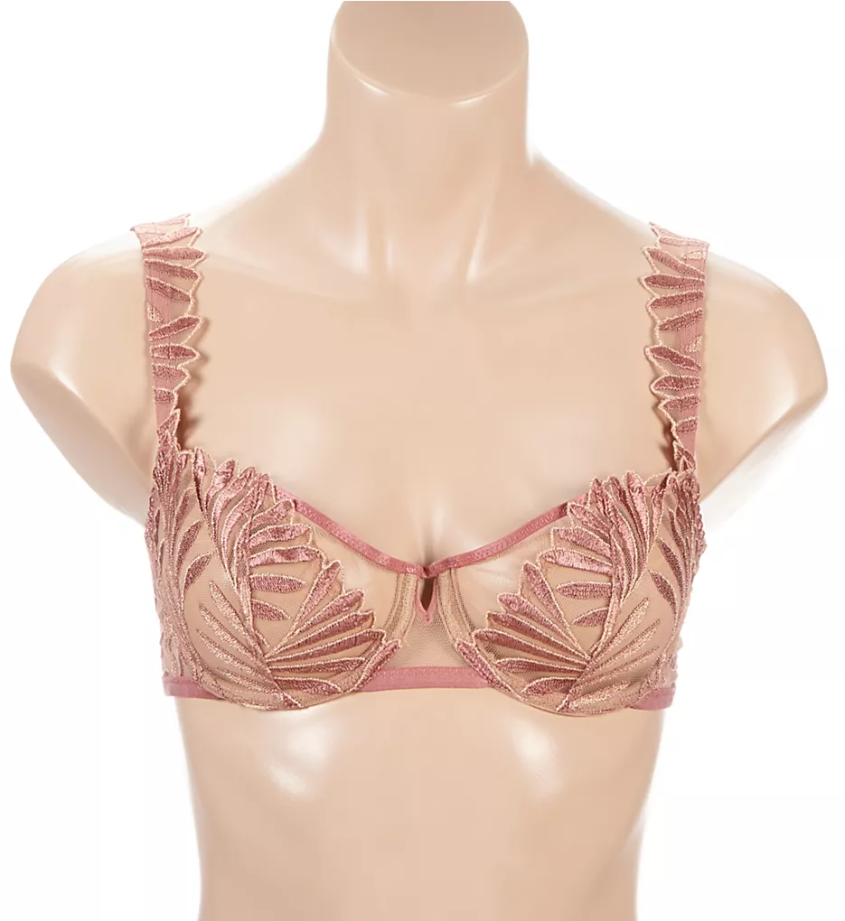- Opulent leaves are embroidered into sheer mesh cups.
