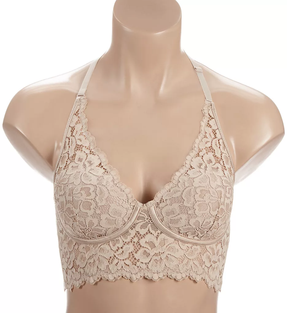 Light, soft lace longline bra has stretch mesh at sides for a secure, barely there fit. Made of nylon and spandex.