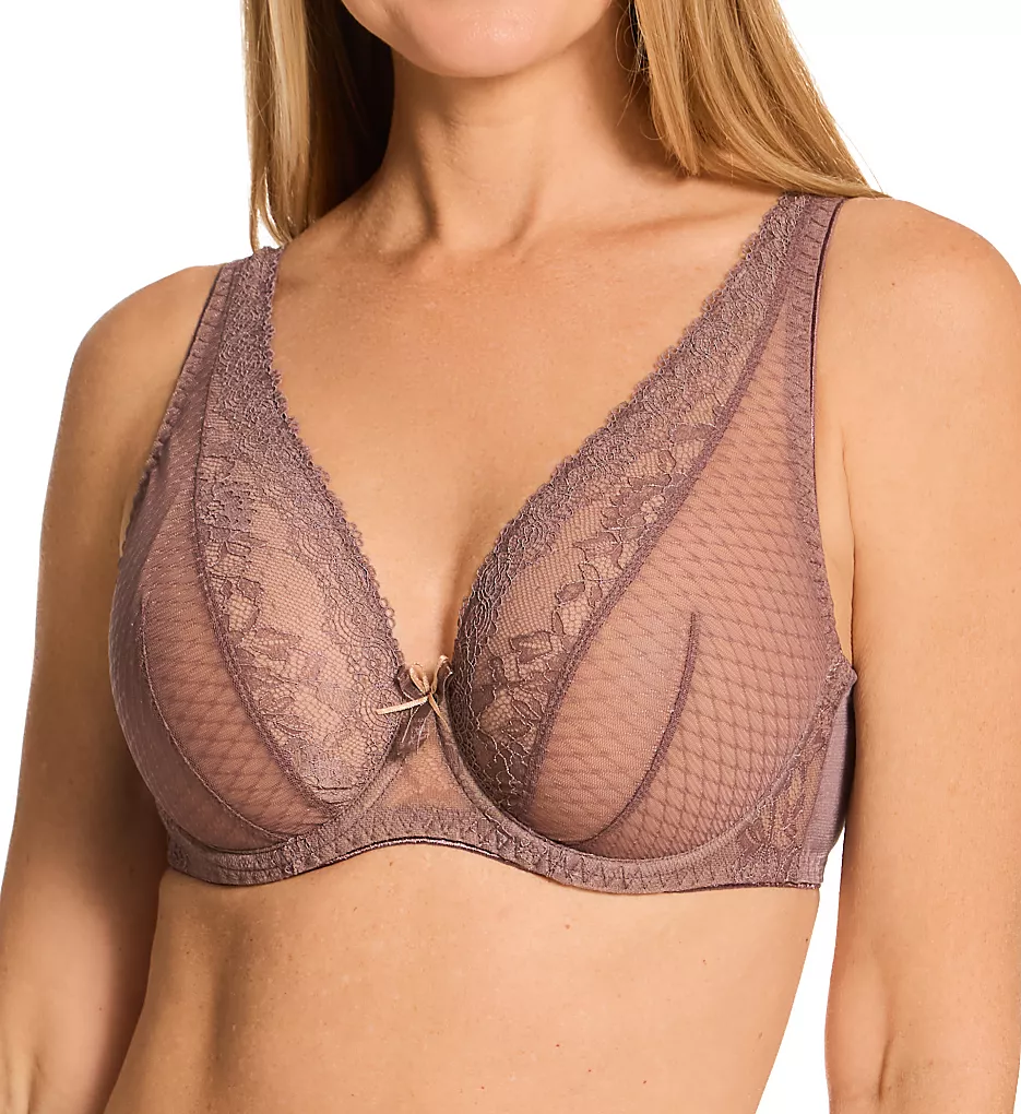 Modern bra design with classic patterned mesh and lace and a sexy sheer look. Made of nylon, polyester, and elastane.