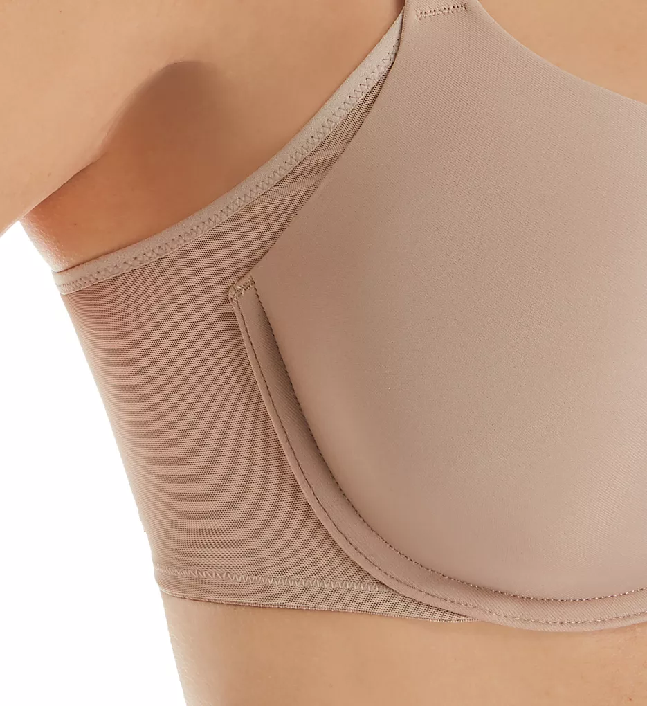 - No Side Effect design has mesh panels at top of cup sides to keep underarm fat in check.