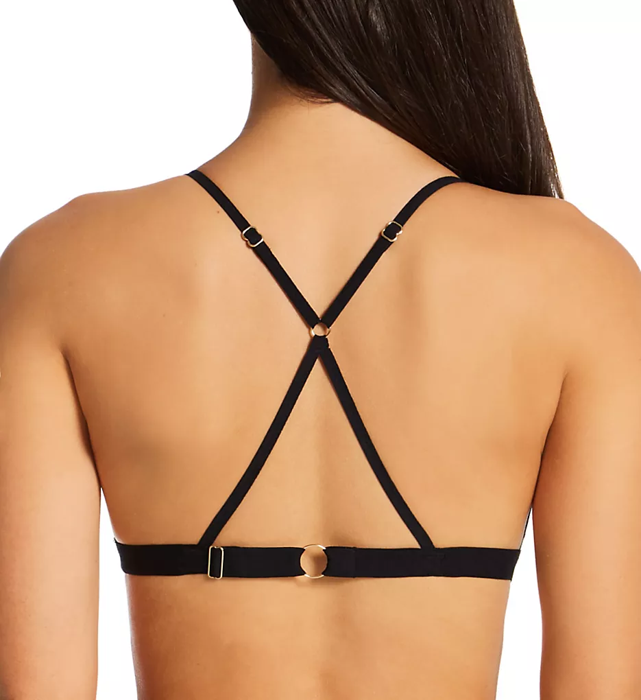 - Elastic straps and underband adjust in the back with goldtone metal hardware.
