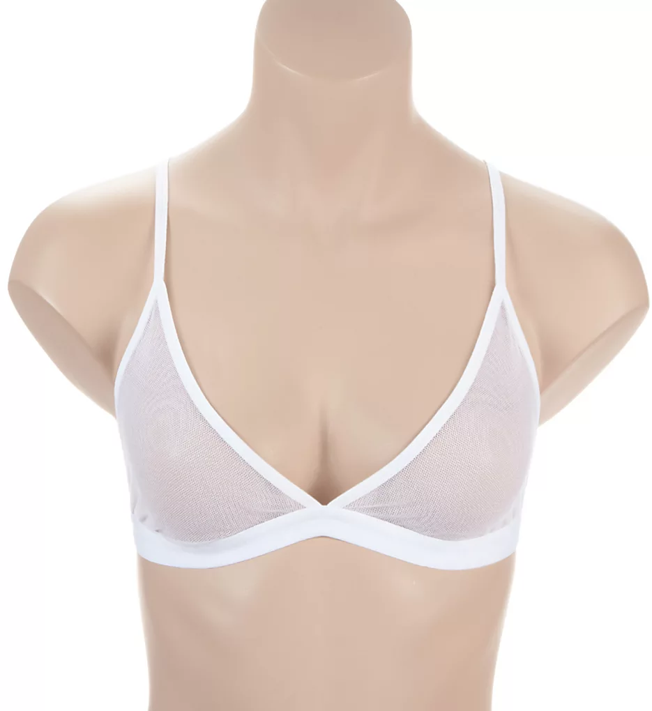 - Unlined (unpadded) triangle wireless cups are sheer mesh.