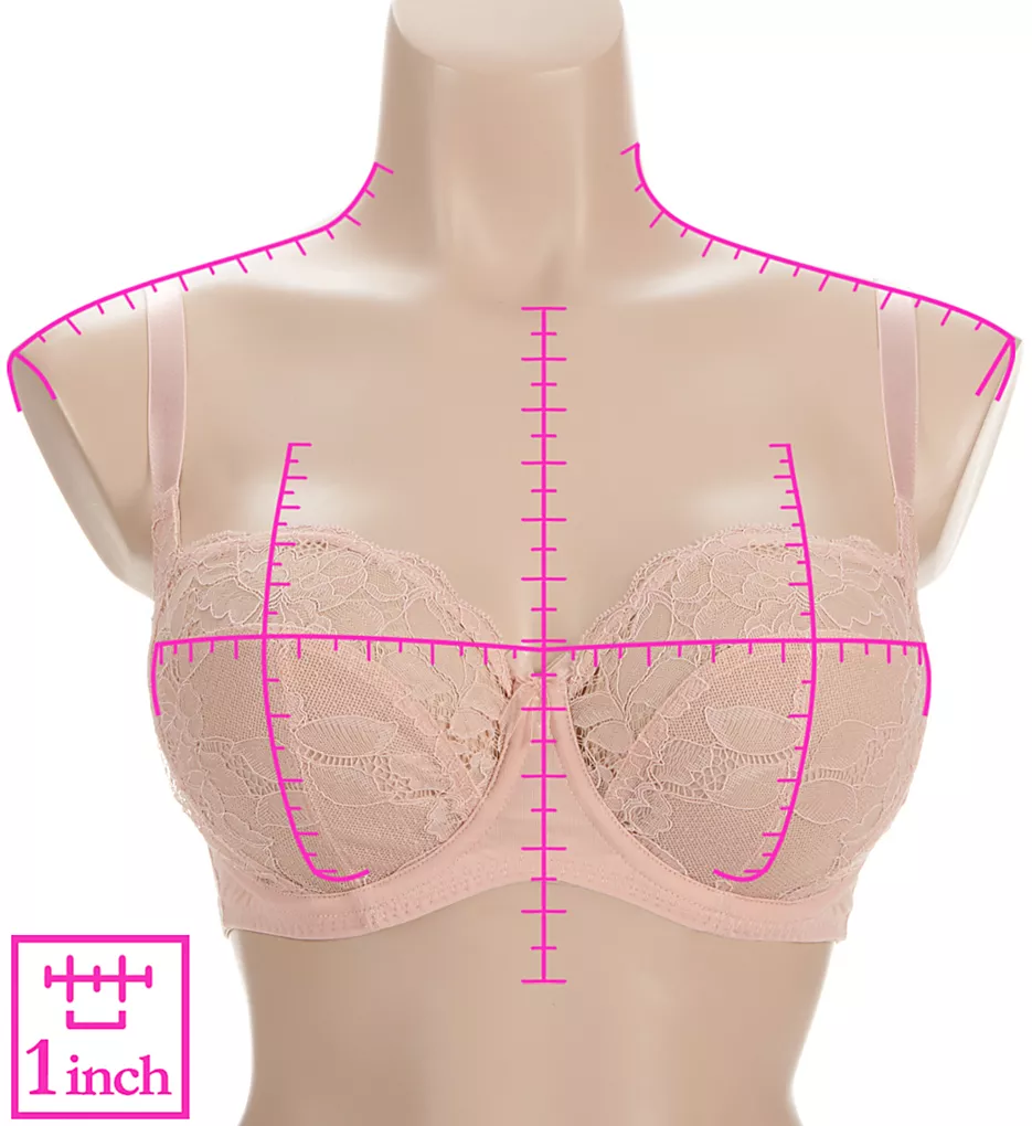 - Multipart underwire cup is lined and has transversal and vertical seams with an integrated side support panel with supportive fine mesh lining at base and panel.