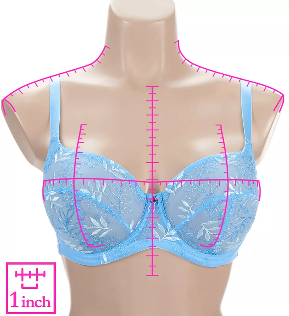 This beautiful balconette bra gives you the support you need but with a fashionable twist. Leaf embroidery covers underwire cups and center panel. Fully adjustable straps have shiny satin finish. Made of polyamide, polyester, and elastane.