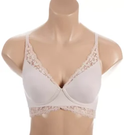 - Cup overlay is sheer, point d’esprit, dot-patterned mesh.