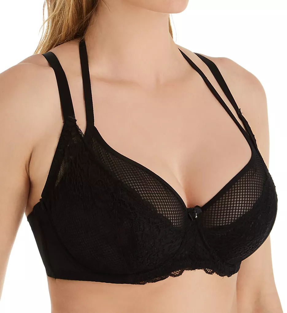 - 3-part, underwire cup with Mesh Lining and lace cup overlay is free of padding and Support Panels.