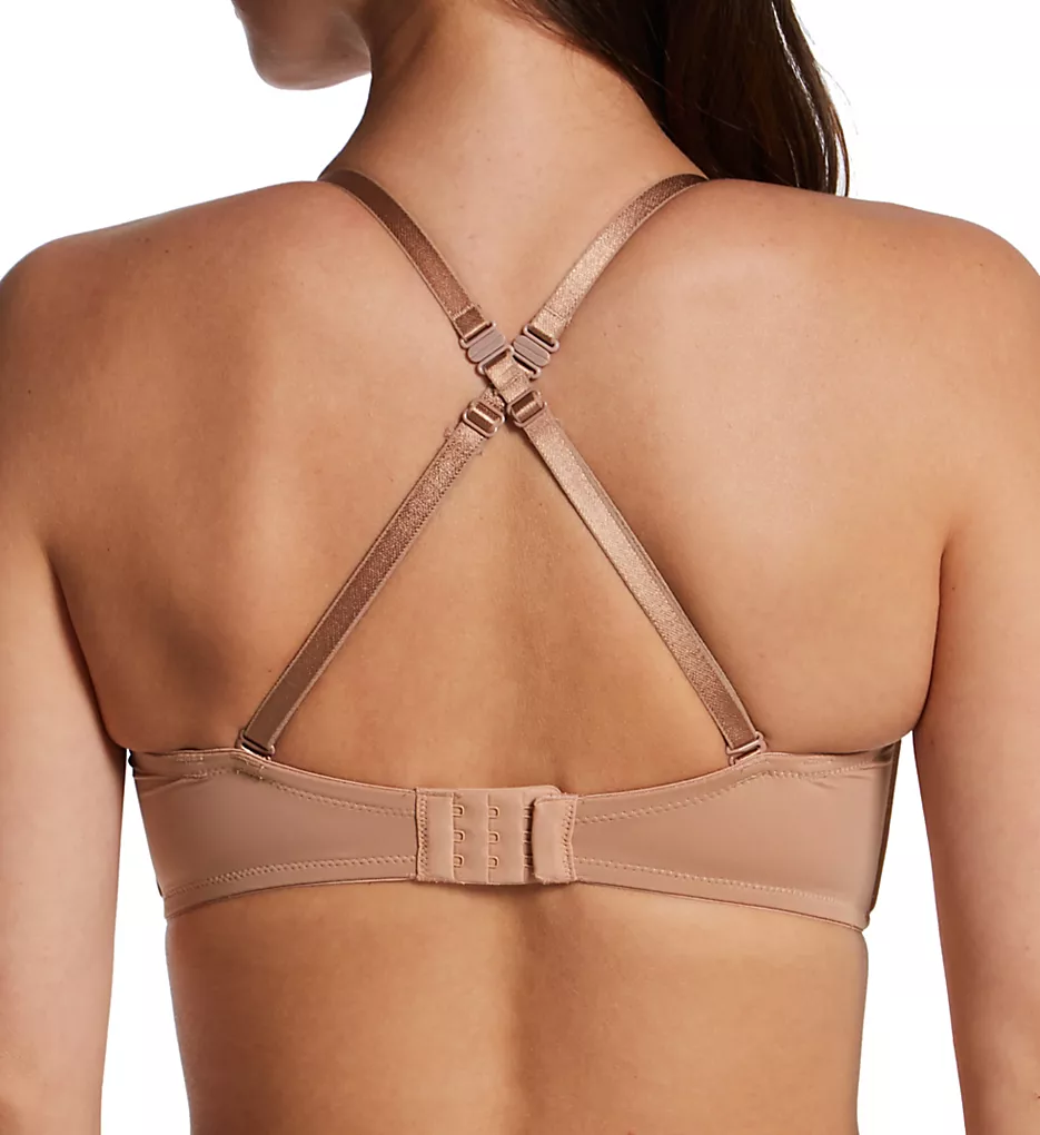 - Convertible hardware at backs of straps allows for crossback wear, removal when straps are a halter, and has two multi-tab positions for versatility.