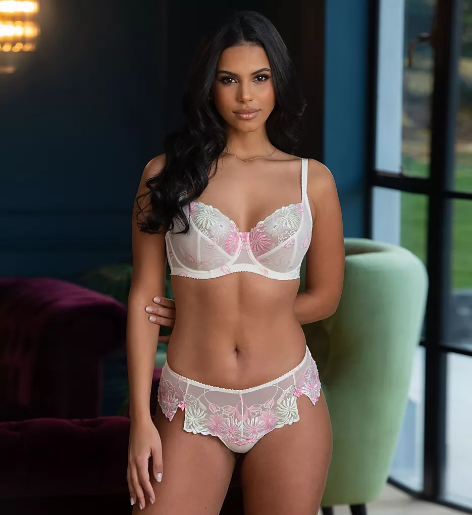 - 3-part, lined underwire cups are free of side Support Panels and padding.