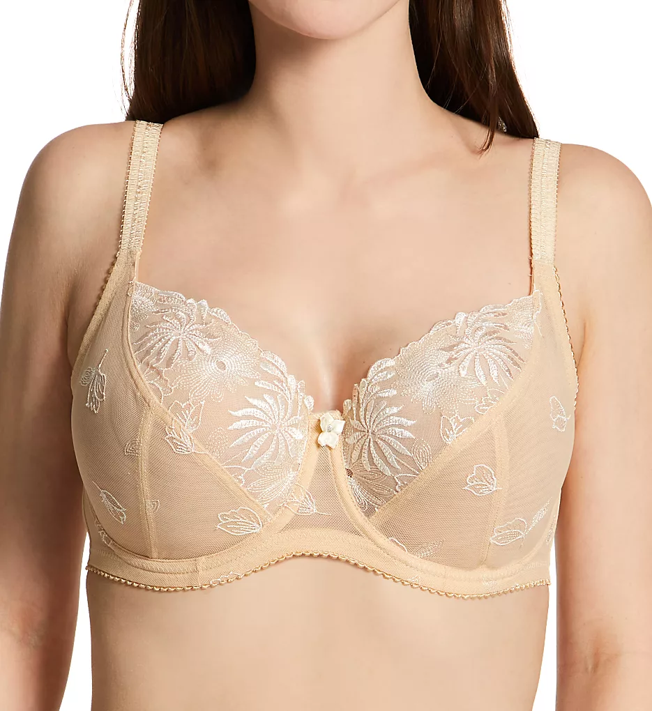 This lovely, semi-sheer, floral embroidered mesh underwire bra features seaming to give your bust an uplifted, natural look under clothing. Made of polyamide, elastane, viscose and polyester.