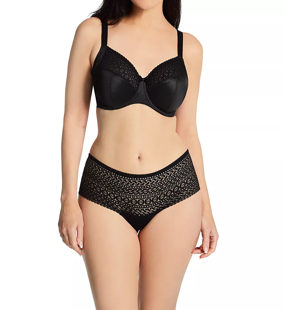 Underwire bra has opaque microfiber cups with sheer lace at top for an elegant touch. Fully adjustable straps have raised dot texture. Made of polyamide, polyester, and elastane.
