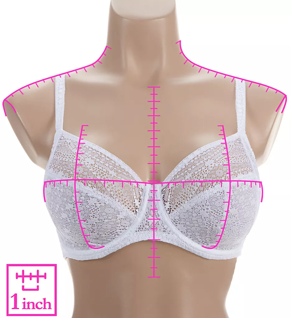 - Multi-part, lined underwire cup gives an uplifted, rounded look, and shapes with angled and vertical seams.