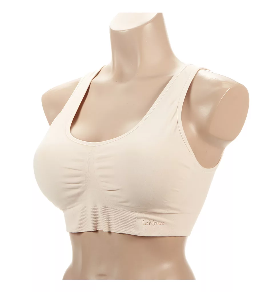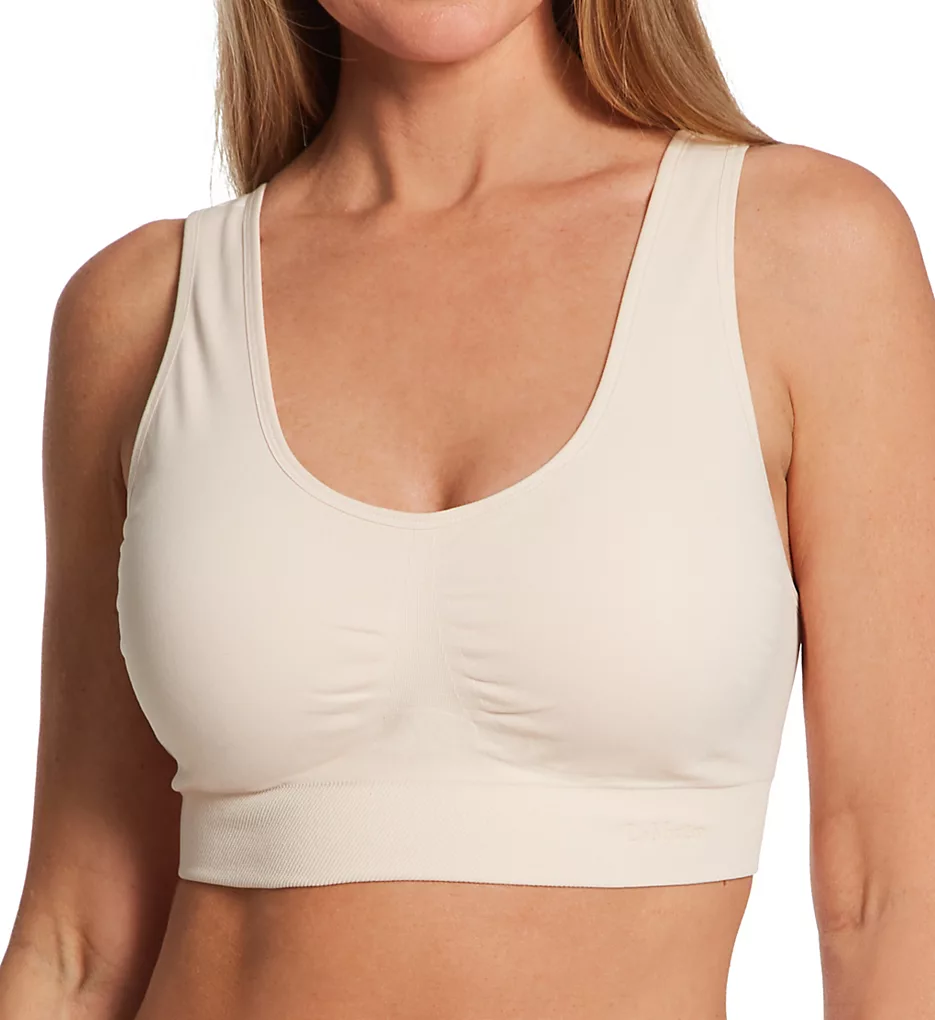 Buttery soft knit bra is free of seams and wires with supportive padded cups and high coverage from sides to back for a smoother look under clothing. Made of nylon and spandex.