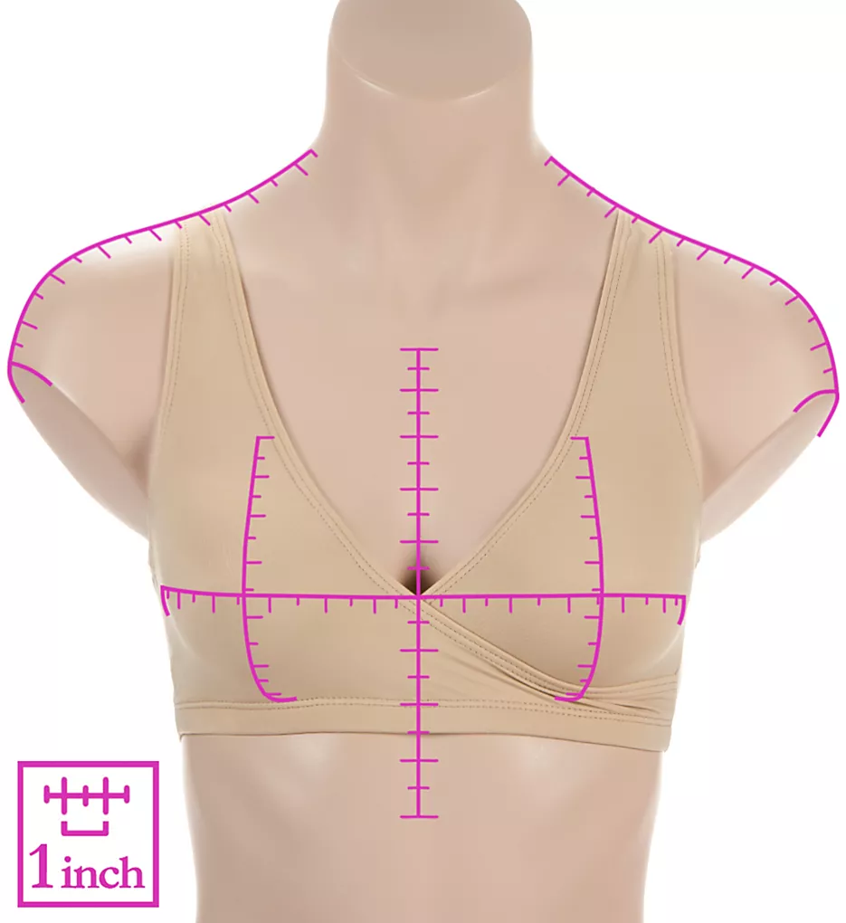 - Soft, wireless cups with crossover at center-front are unlined (unpadded).