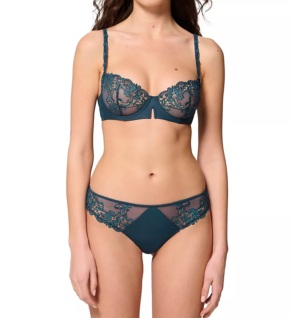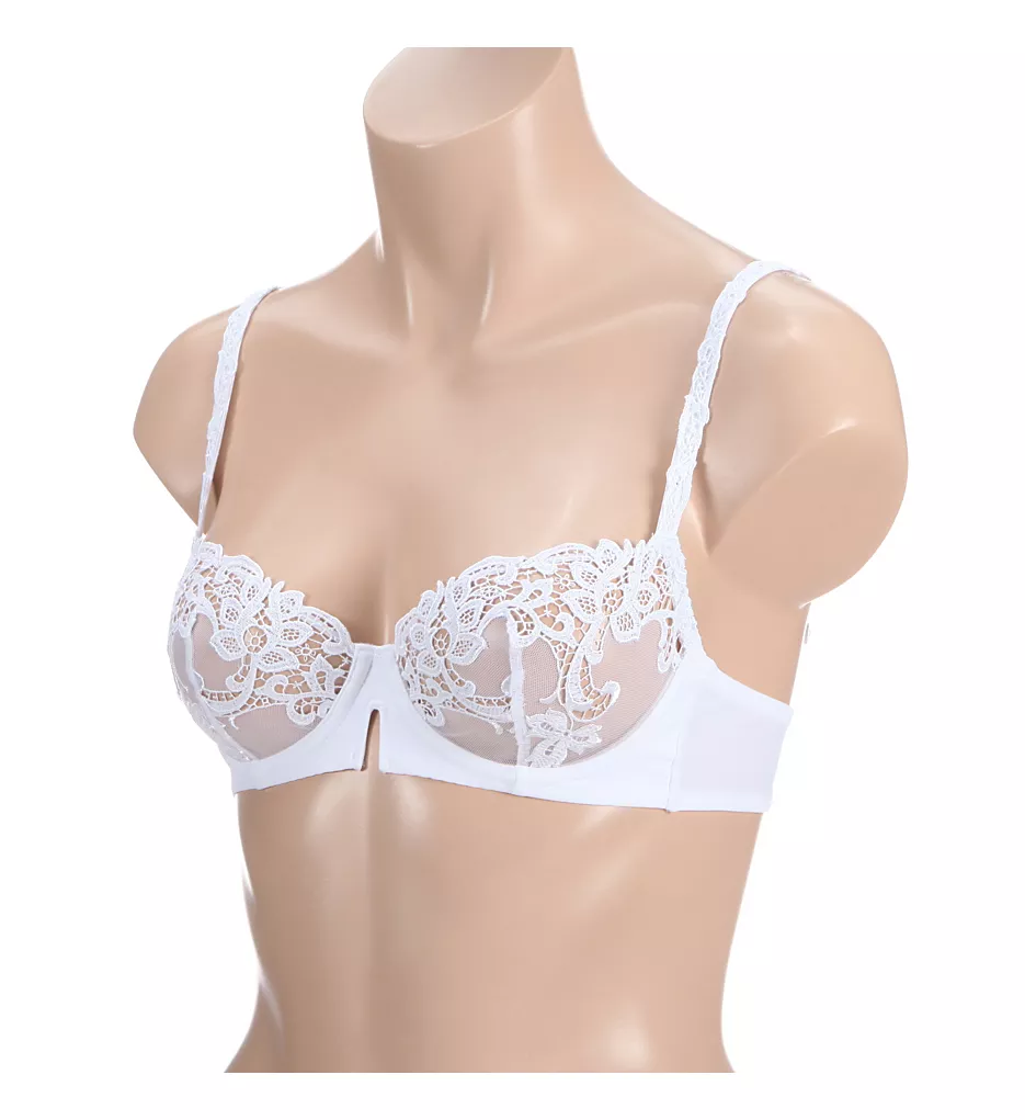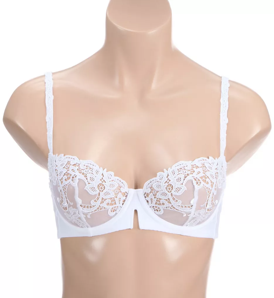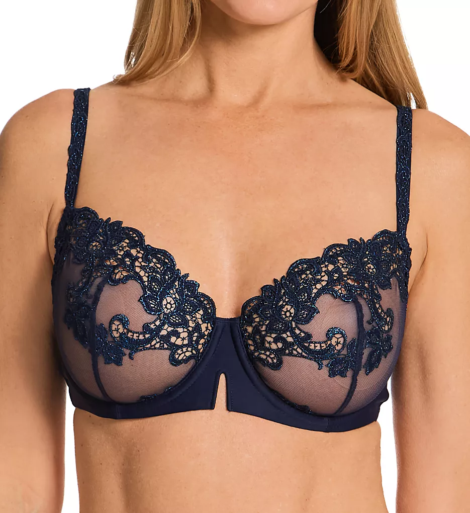 Elegant guipure lace adds a tantalizing edge to the cups of this sexy, sheer mesh, demi underwire bra. Made of nylon/polyester/elastane.