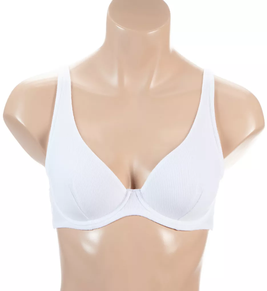 - Underwire apex cups have smooth cotton blend knit lining with vertical darts to shape fit.