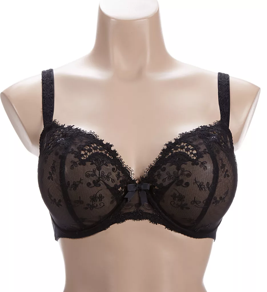 - Sheer underwire cup is lined with same fabric with a vertical seam to create a lifted, rounded and supported shape.