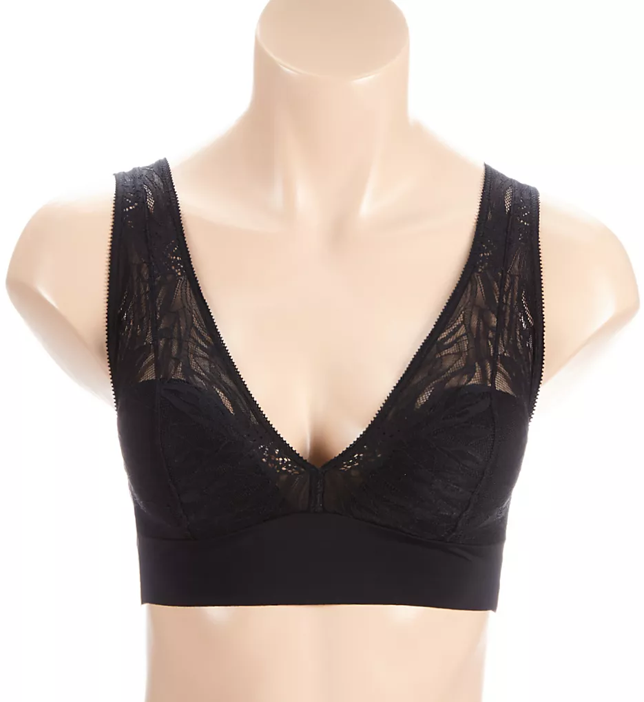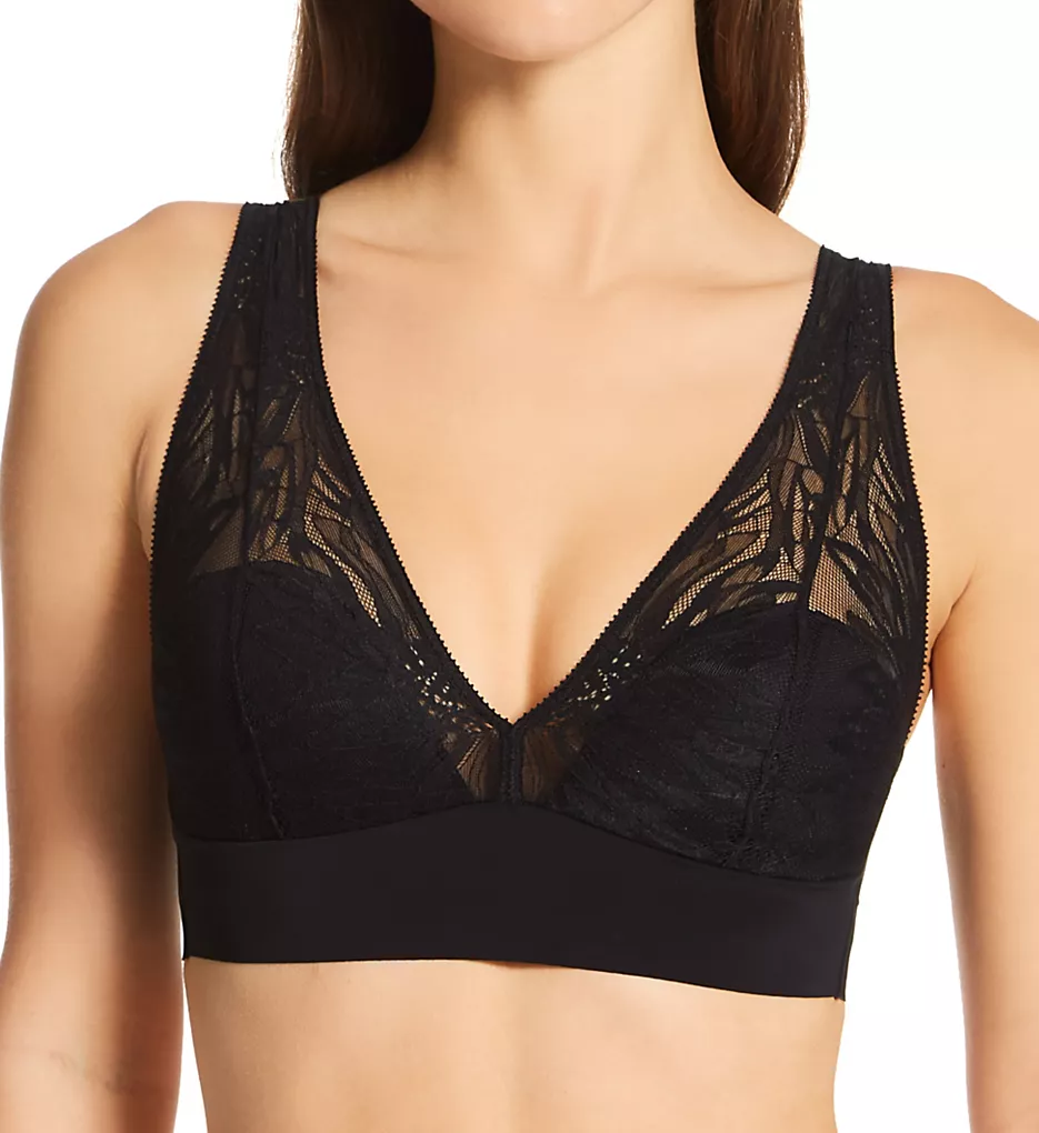 Pretty lounge bra features a flattering longline body with supportive bonded bands and silky microfiber. Made of nylon and spandex.