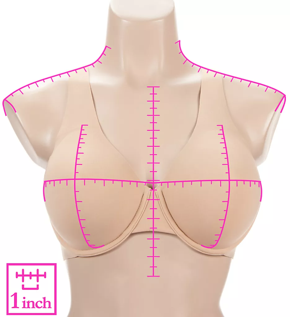 - Stretchy molded cups provide a near custom fit for each breast for a more even appearance.