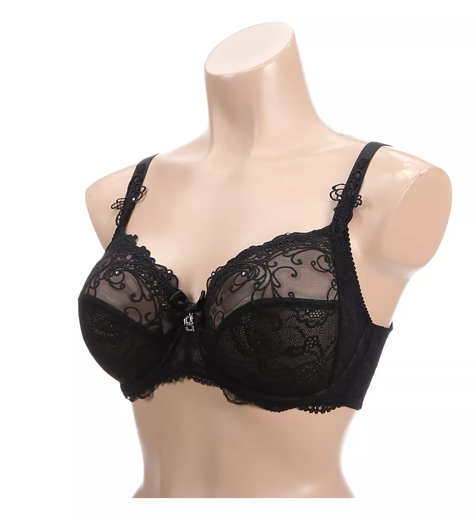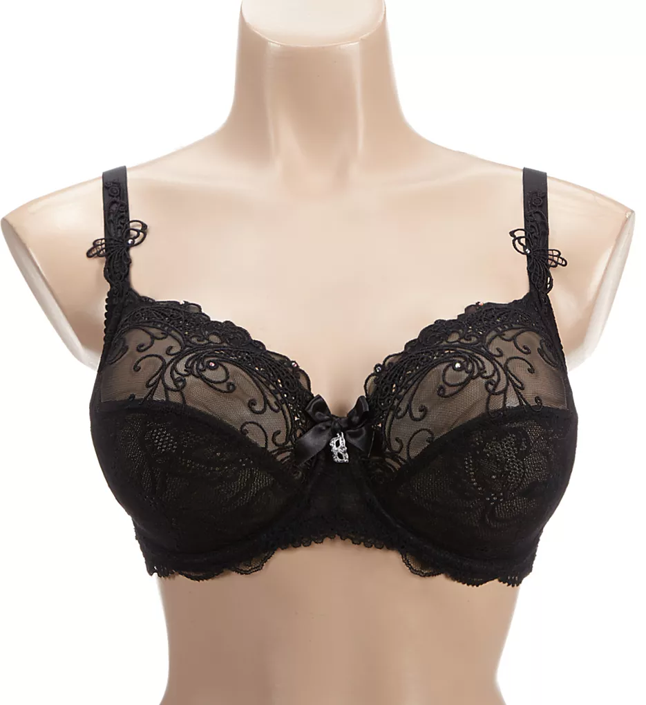 Embrace your sensuality in this bra with gorgeous embroidery, Leavers lace, and Swarovski crystal accents. Made from polyamide, elastane, polyester, and cotton.