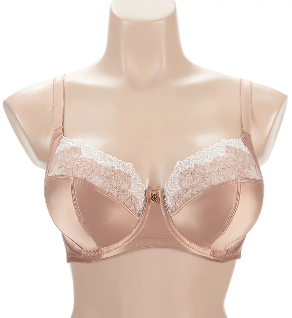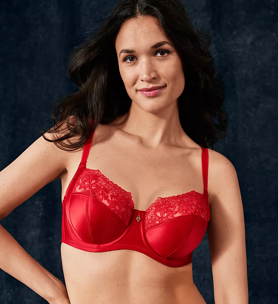 Show off your sultry side in this underwire bra. Seamed microfiber cups have sheer floral lace at top. Sides and back are semi-sheer mesh. Fully adjustable straps have picot trim for added elegance. Made of polyester, nylon, and spandex.