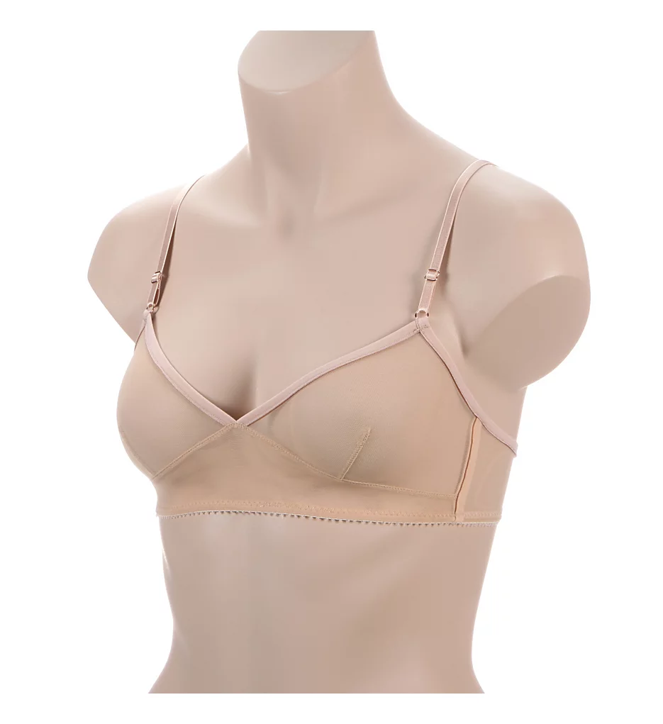- Unlined (unpadded), wireless, see-through cups shape and support the breasts with a dart in each cup for shape.